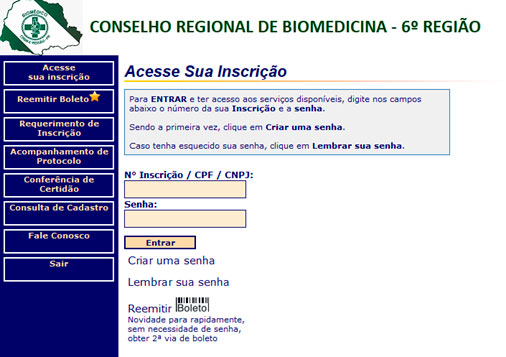 Para acessar seu registro virtual no site do Conselho e, imprimir boletos vencidos, parcelamentos, entre outras solicitações, clique no link Serviços online, efetue seu Login (com seu CRBM) e sua senha pessoal.