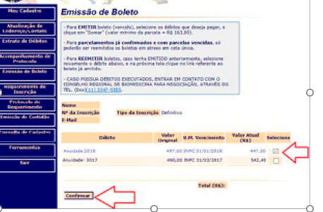 5) Na tela que abrir, selecione a anuidade 2019 e clique em Confirmar.