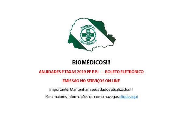 Profissional ou empresa inscrito no Conselho Regional de Biomedicina 6ª Região, Com o objetivo de facilitar a emissão do boleto