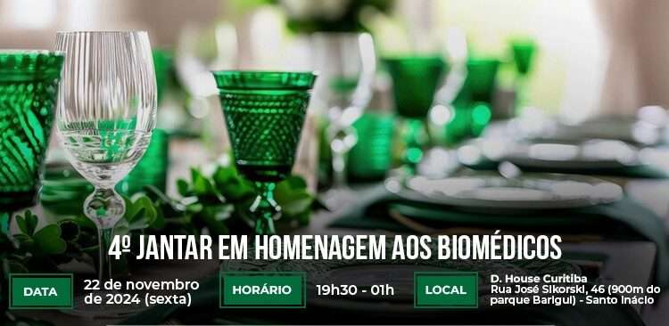Uma noite especial para celebrar o compromisso e dedicação dos biomédicos! No dia 22 de novembro, participe do 4º Jantar