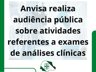 Anvisa realiza audiência pública sobre atividades referentes a exames de análises clínicas O evento ocorrerá de maneira virtual, no dia