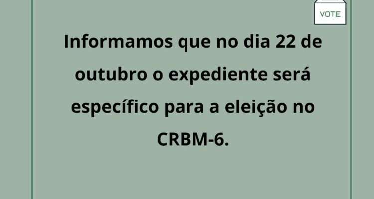 Atenção biomédicos, no dia 22/10/2020 o expediente na sede do CRBM-6 será das 8 às 18h e específico às eleições.